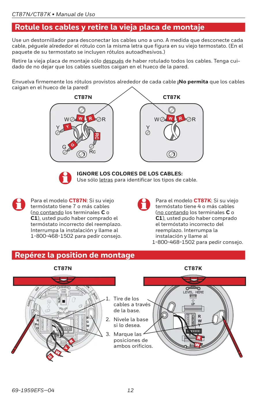 - ¡Paso CRÍTICO! Rotula los cables: Usa los rótulos autoadhesivos provistos para marcar cada cable con la letra del terminal al que estaba conectado en tu viejo termostato. ¡Asegúrate de que los cables no caigan dentro del hueco de la pared!