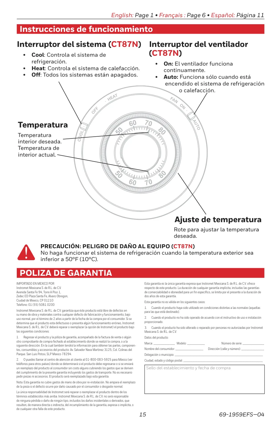 - Para el modelo CT87K (Solo Calefacción):