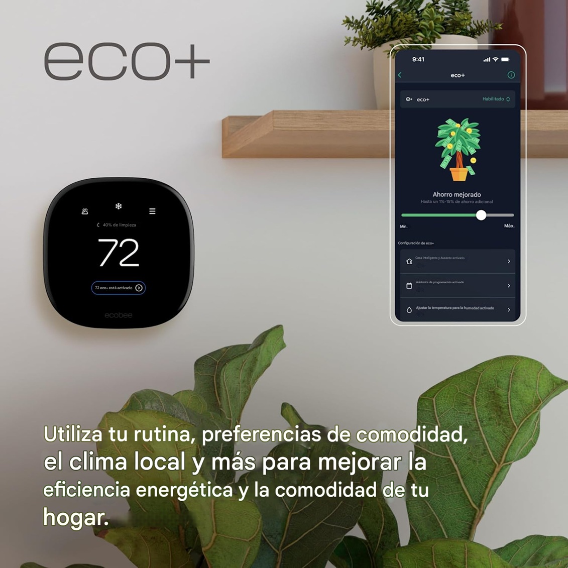 Ahora vamos a lo importante. La razón principal para comprar un bicho de estos es para que la factura de la luz no nos dé un susto de muerte. El Ecobee Premium no tiene un "botón eco" como tal, pero tiene algo mejor: el sistema Eco+.