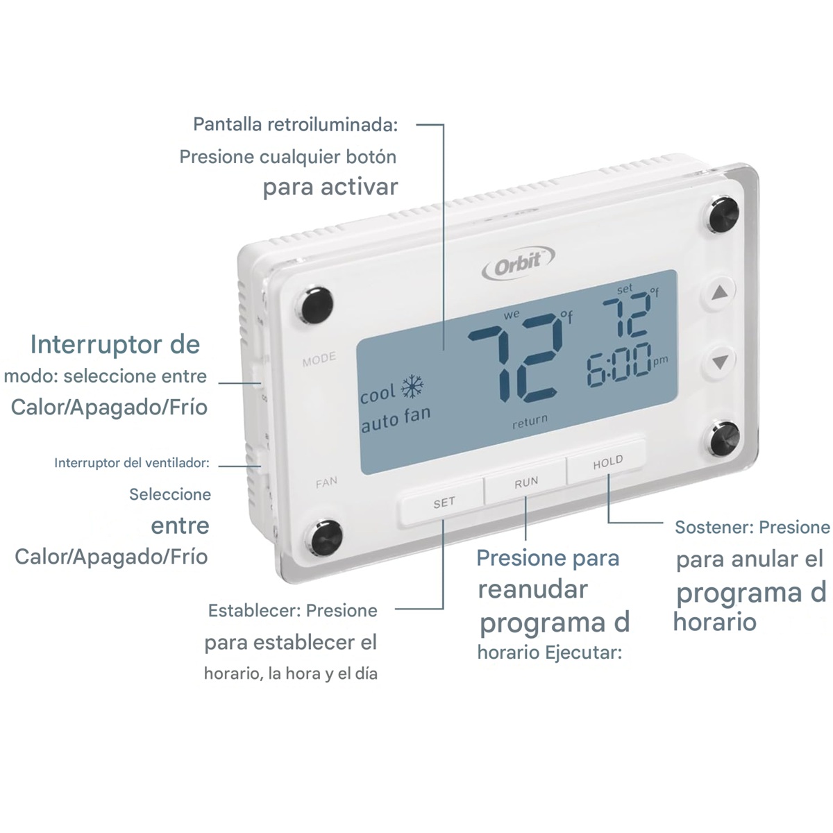 Termostato de confort Orbit 83521, transparente, programable, con pantalla grande, fácil de leer